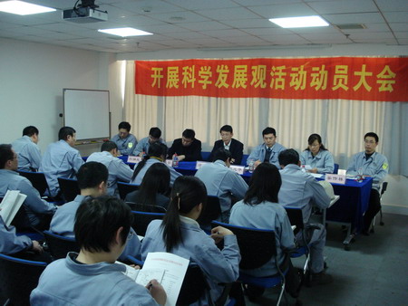 動員大會由總經(jīng)理孫龍平同志主持。會上,首先宣讀了《關(guān)于成立公司學(xué)習(xí)實(shí)踐科學(xué)發(fā)展觀領(lǐng)導(dǎo)小組的通知》,荏原博泵黨總支副書記姜作棟同志宣讀了公司《深入學(xué)習(xí)實(shí)踐科學(xué)發(fā)展觀活動的實(shí)施方案》,明確了各階段的任務(wù)要求和具體責(zé)任人,并公布了公司信箱、意見箱,鼓勵(lì)廣大黨員、群眾對公司開展好學(xué)習(xí)實(shí)踐科學(xué)發(fā)展觀活動獻(xiàn)計(jì)獻(xiàn)策。